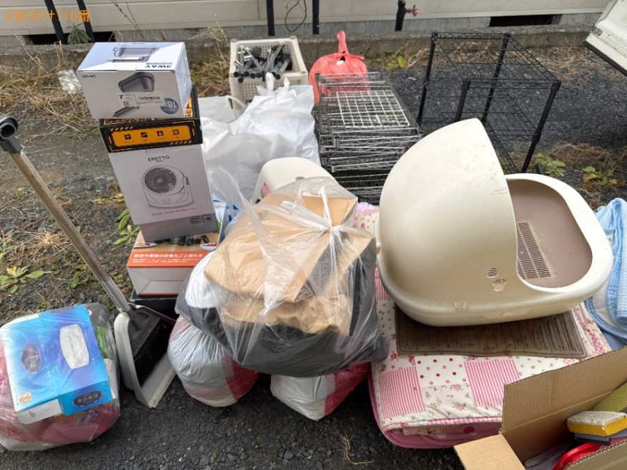 スチールラック、衣類、布団、ほうき、ちり取り、一般ごみ等の回収